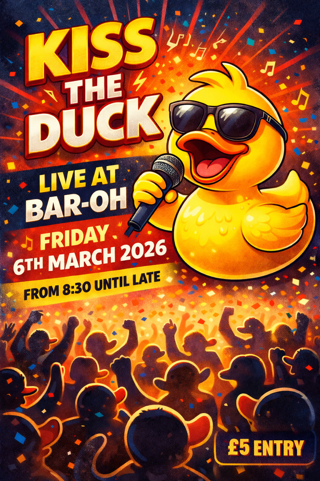 As the weather turns to spring, the ducks come to play at bar OH. join the ducks on friday 6 march from 8.30pm. £5 on the door and book early to secure a table and avoid disappointment. with computer games, sensational cocktails and table service all night.